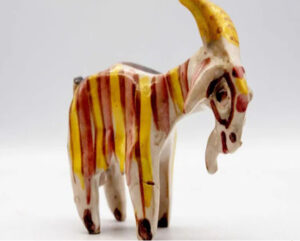 ചാൾസ് രാജാവ് കേംബ്രിഡ്ജ് യൂണിവേഴ്സിറ്റിയിൽ ആയിരുന്ന കാലത്ത് നിർമ്മിച്ചതെന്ന് കരുതപ്പെടുന്ന മൺപാത്ര ആട് പ്രതിമ ഈ വർഷം മേയ് മാസത്തിലാണ് വിൽപ്പനയ്ക്കെത്തിയത്. റിപ്പോർട്ടുകൾ പ്രകാരം, മഞ്ഞയും പിങ്ക് നിറത്തിലുള്ള വരകളും കൊണ്ട് വരച്ച ആടിന്റെ പ്രതിമ സ്വന്തമാക്കാൻ മൊത്തം ചെലവ് 11,407 പൗണ്ടാണ് (ഏകദേശം 12 ലക്ഷം രൂപ).